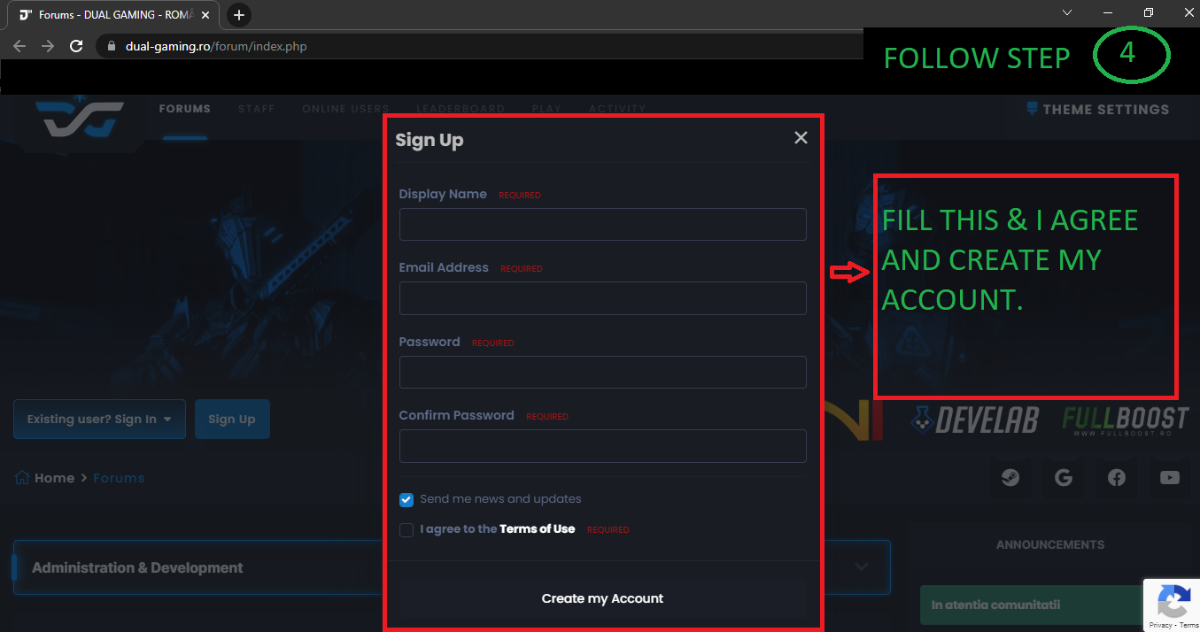NEXT STEP EMAIL ID VERIFICATION .OPEN EMAIL ACCOUNT LOOK THERE DUAL-GAMING.RO MAIL CLICK THERE .NEXT DONE .NOW OPEN   DUAL-GAMING.RO SITE PUT EMAIL ID AND PASSWORD ENJOY.